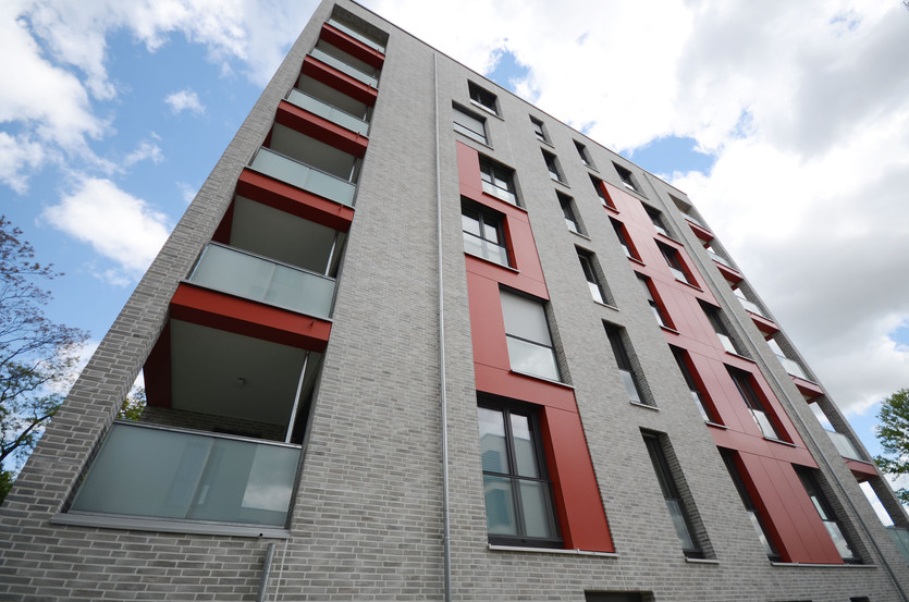 Vor Kurzem fertiggestellt: In der Rosensteinstraße in Stuttgart sind mehrere Gebäudekomplexe mit Wohnungen entstanden. Der Klinkerfassade haben wir durch unsere Rockpanel Fassadentafeln den entsprechenden Farbtupfer in rot und orange verpasst.